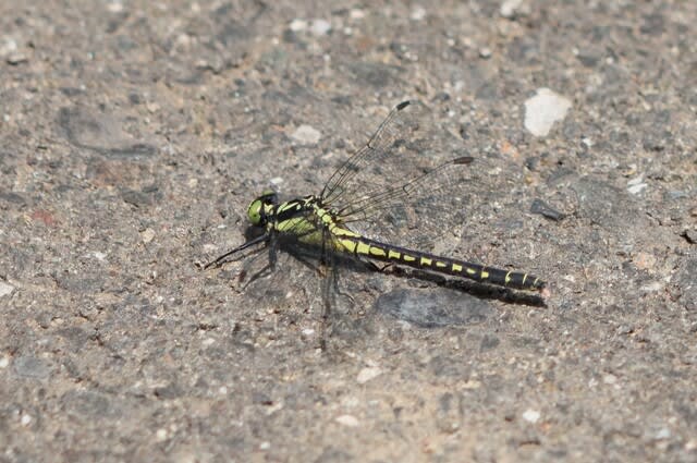 黒色で黄色の条紋があり、一見、オニヤンマに似た大型のサナエトンボの仲間。