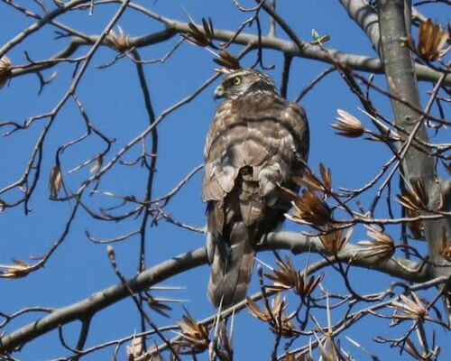 カメラぶら下げ 春の美しい花探し~(^ー^* )フフ♪ 公園内を下ばかり見ながら ウロウロしていると 何やら興奮しているようなカラスの鳴き声が・・・(・・? 向こうの高い木の上に二羽のカラスと カラスより少し太っている茶色の鳥が見えた! 肉眼ではよく見えな…