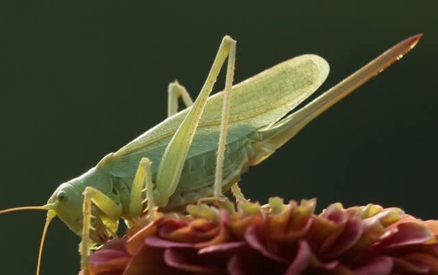 キリギリスに比べ、翅が長く、脚のトゲも長くて鋭い。